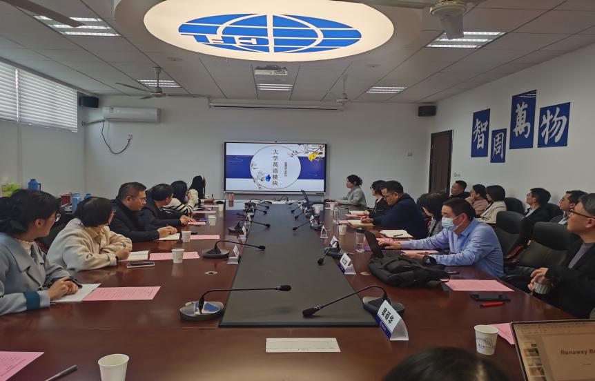 英语系主任张立新、大学外语教学部主任徐智鑫和大学外语教学部党支部书记李迟依次对英语专业建设情况、大学英语教学改革现状和工程英语课程建设进行汇报。大家对专业和大学英语教学改革展开有效研讨。