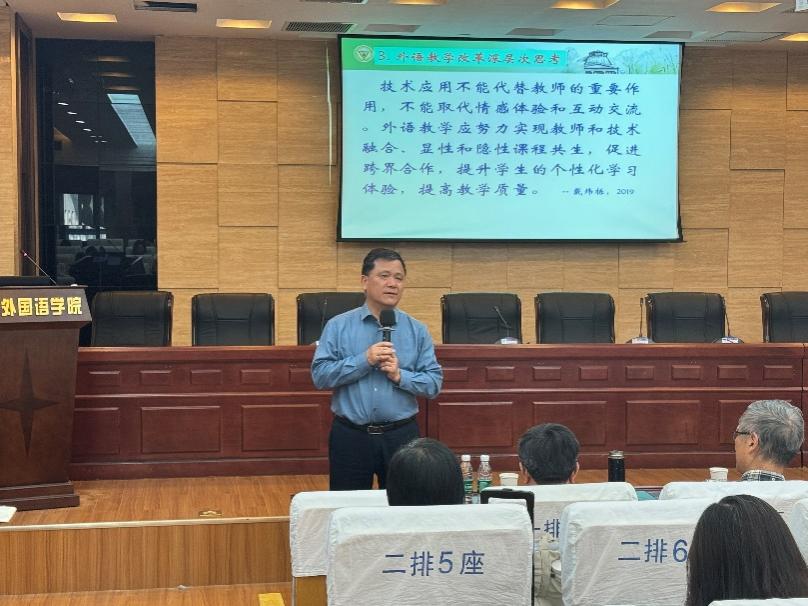 范祥涛院长在最后总结时表示,每位外语教师都要用热情的双臂去拥抱人工智能,积极探索人工智能在英语教学中的应用,将GAI作为英语教学的有力助手,为英语教学注入新的动力和活力,为培养更多具有国际视野和家国情怀的人才做出贡献。