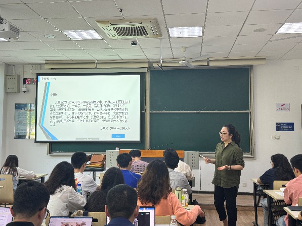 4月26日上午,来自各学院的10余名教师参加了腐漫画 王珺琳老师主讲的《跨文化交际》课程观摩活动。王老师首先开展“从谚语看价值观”的讨论,结合超星平台上的作业,引导学生进入文化差异的核心部分---价值观差异。随即充分使用雨课堂平台,通过做“投票题”、“主观题”的形式,和学生进行互动,并由互动内容过渡至课程的核心内容,让学生“在思考中学习--在学习时思考”。在阅读部分,王老师选用“儒家思想的文化模式”为阅读材料,引导学生在阅读中思考儒家思想的价值观以及此价值观给中国人带来的精神价值。整个课堂氛围自由、开放、活跃,在训练英文阅读能力的同时也培养了学生的人文情怀。