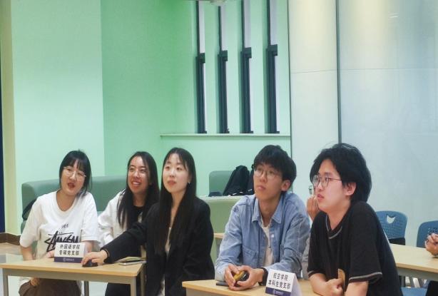 为进一步深入贯彻落实习近平总书记关于党纪学习教育的重要讲话和指示批示精神,5月10日,外国语学院联合航空学院举办学习《中国共产党纪律处分条例》知识竞赛,外国语学院团委书记李萍,航空学院辅导员丛歆雨,外国语学院辅导员彭欢、姚灵珑,以及双方学院学生党员代表参加了此次活动。活动由外国语学院学生支部书记丘彩珍主持。