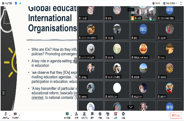 邀请英国诺丁汉大学教育学院袁婷婷副教授做学术报告,题为“全球化视野下的社会科学研究:以国际教育为例”。报告会采用线上线下相结合的方式,由副院长徐智鑫主持,院长徐以中、副院长姜礼福出席,70余名师生参加了本次报告会。