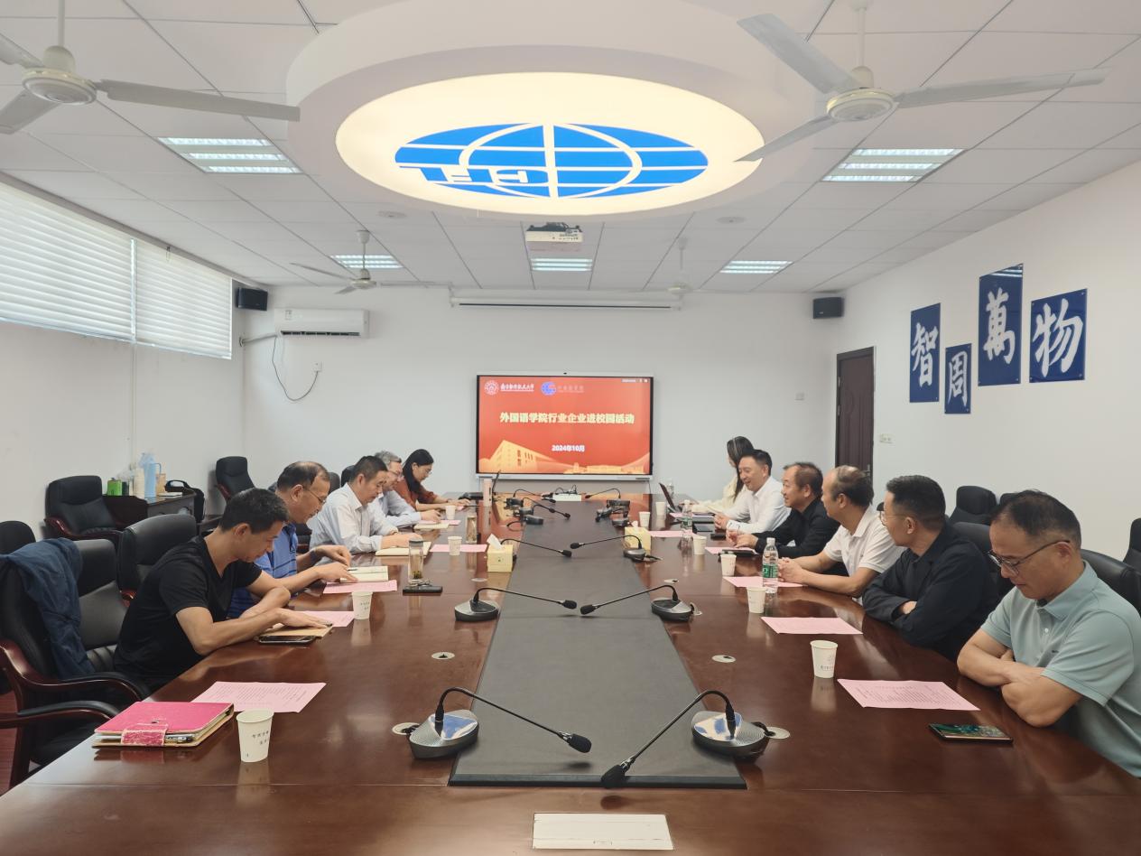 行业企业进校园,校企育人创未来。为了深化产教融合、服务国家战略,10月1日下午,腐漫画 开展了本学期首场“行业企业进校园”活动。本次活动由湖南传神科技有限公司、南京译桥翻译公司董事长左仁君主持,江苏省翻译协会会长刘成富教授,江苏圣典律师事务所创始人贾政和主任等一行,腐漫画 院长徐以中教授及学院相关教师等出席参与。