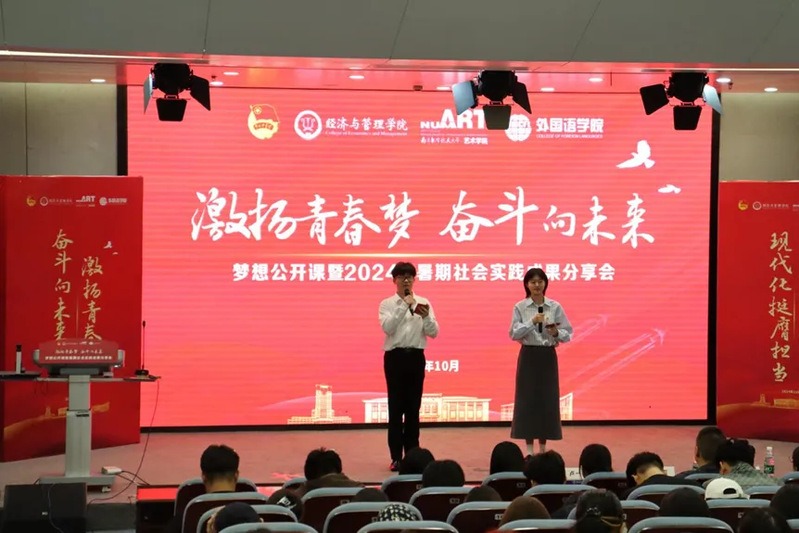 10月11日下午,经济与管理学院、艺术学院、外国语学院联合举办的“激扬青春梦,奋斗向未来”梦想公开课暨2024年暑期社会实践成果分享会在我校天目湖校区巡天楼一楼报告厅成功举办。经济与管理学院党委委员、管工系教师罗正军,艺术学院党委副书记卢一亭,外国语学院党委副书记吴科颖,各学院的团委书记、辅导员老师们以及2024级本科生出席了此次活动。