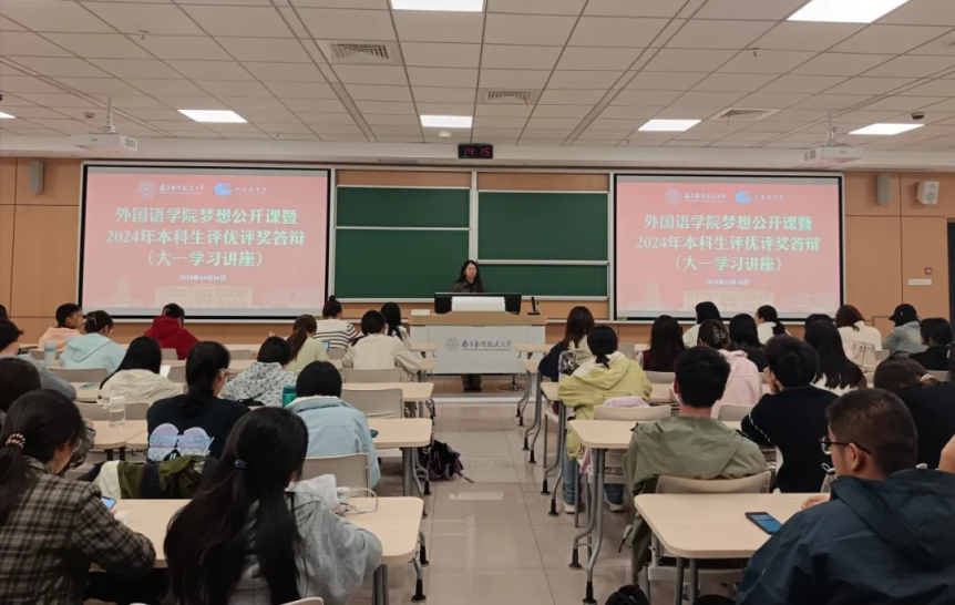 姚灵珑邀请大一学生一同观看优秀学长学姐的答辩过程,指导同学们如何制作更具有吸引力和展示力的PPT,并鼓励大一的同学们向学长学姐们学习,展示腐漫画 学子风采。