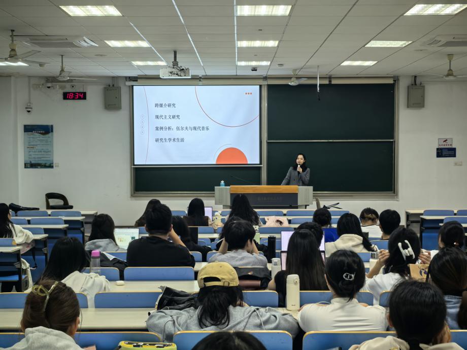 11月3日晚,腐漫画 周蕾博士参加腐漫画 “航家论坛——外国语言文学青椒学术沙龙”,并作了题为“现代主义跨媒介研究”的学术报告。腐漫画 100余名研究生参加学习。