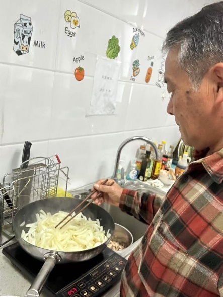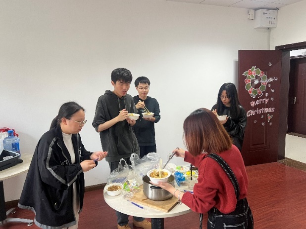 中午时分,外教北村忠吉老师带领部分同学在“快乐厨房”为大家精心准备了咖喱鸡肉饭,香气四溢。日语系的窦硕华、汪丽影、宋歌老师、退休教师王鹏飞老师、大学外语教学部的孙睿超老师与同学们齐聚一堂,共享美食,欢声笑语在空气中弥漫。