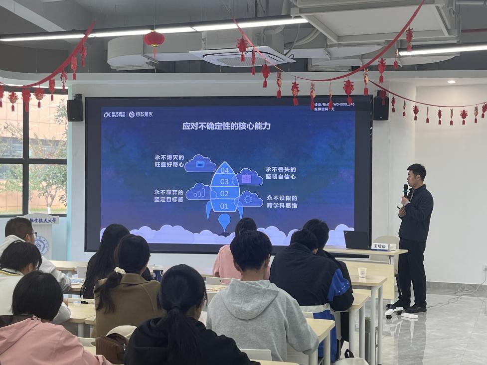 11月13日,腐漫画 首次AI赋能系列讲座在天目湖校区”一站式“学生社区顺利举行。科大讯飞江苏大区高教行业总监、资深教育行业咨询与解决方案专家,南京邮电大学人工智能学院、南通大学人工智能学院等高校的企业导师王明松做客腐漫画 “学涯筑梦”。腐漫画 日语系副主任钟勇、本科生辅导员姚灵珑参与本次活动。