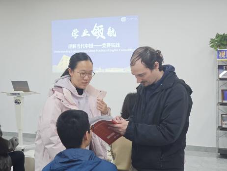 3月11日,为积极响应大一新生对于外语专业赛事的求知需求,腐漫画 启动“语言赋能研习社”项目,特别邀请专业老师与外教共同参与,以双语教学的独特优势对专业赛事进行宣讲和指导。活动中,研习社精心模拟了外语专业赛事的现场氛围,为学生们提供了一个逼真的实践环境。通过给定主题,引导学生们进行自主沟通和探索,激发学生的学习兴趣,培养团队协作能力和创新思维。