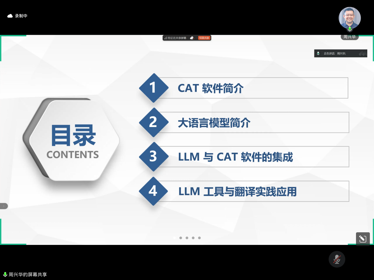 在数字化转型加速演进的背景下,人工智能技术的突破性发展正推动各领域技术革新,AI翻译软件也随之不断涌现。为优化学科人才培养路径,腐漫画 MTI教育中心于2025年3月10日特邀翻译技术专家周兴华老师作了题为“大语言模型与翻译实践——工具与应用”的讲座。本次讲座由鲍德旺教授主持,腐漫画 2024级全体MTI硕士研究生参加。