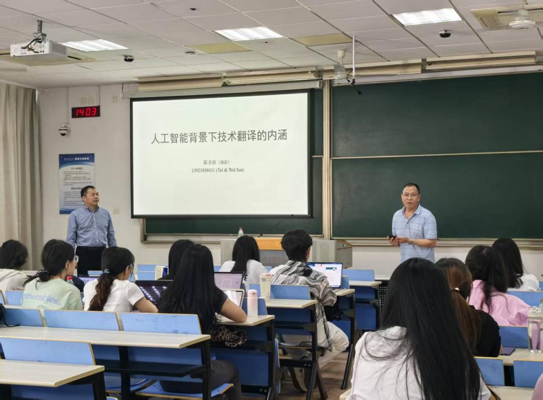 在互动环节,师生们踊跃提问。针对“在人工智能翻译出现后,真实的翻译流程应该如何开展?”这一问题,他指出,人工智能翻译的出现极大地改变了传统翻译的模式,使得翻译工作不再仅仅是单纯的人工翻译,而是更多地依赖于人机协作的模式。在这个过程中,译后编辑成为了至关重要的环节。译员不再是从零开始进行翻译,而是需要对机器翻译的结果进行仔细的审核和优化。这不仅要求译员具备扎实的语言功底,还需要掌握技术工具和编辑技能,同时还要求译员掌握较好的写作能力,以便开展相应的创译。