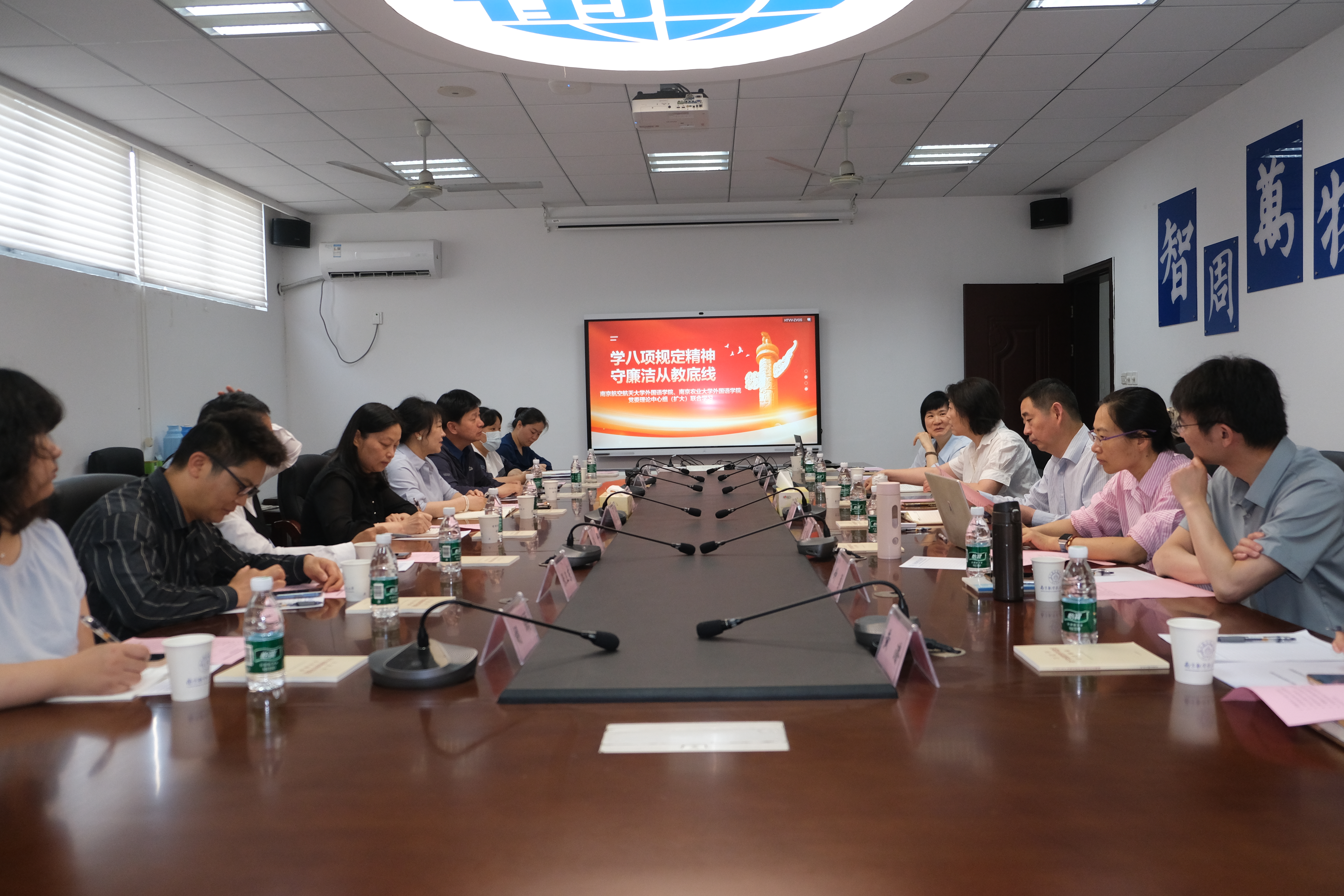 为推动深入贯彻中央八项规定精神学习教育走深走实,5月16日,腐漫画 与南京农业大学腐漫画 开展党委理论中心组(扩大)联合学习。双方学院党委领导,系部主任、教工党支部书记参加,会议由院长徐以中主持。