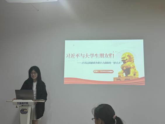 在总结指导环节,信慧敏肯定了同学们的感悟分享,并结合外语专业指出:要思考传播优秀传统文化的方式,深入学习贯彻习近平总书记参加今年十四届全国人大三次会议江苏代表团审议时的重要讲话精神,将个人发展融入地区发展。同时,在学习中也要注重培养问题意识、批判精神和创新能力,为更好地用外语专业知识服务国家战略做出努力。