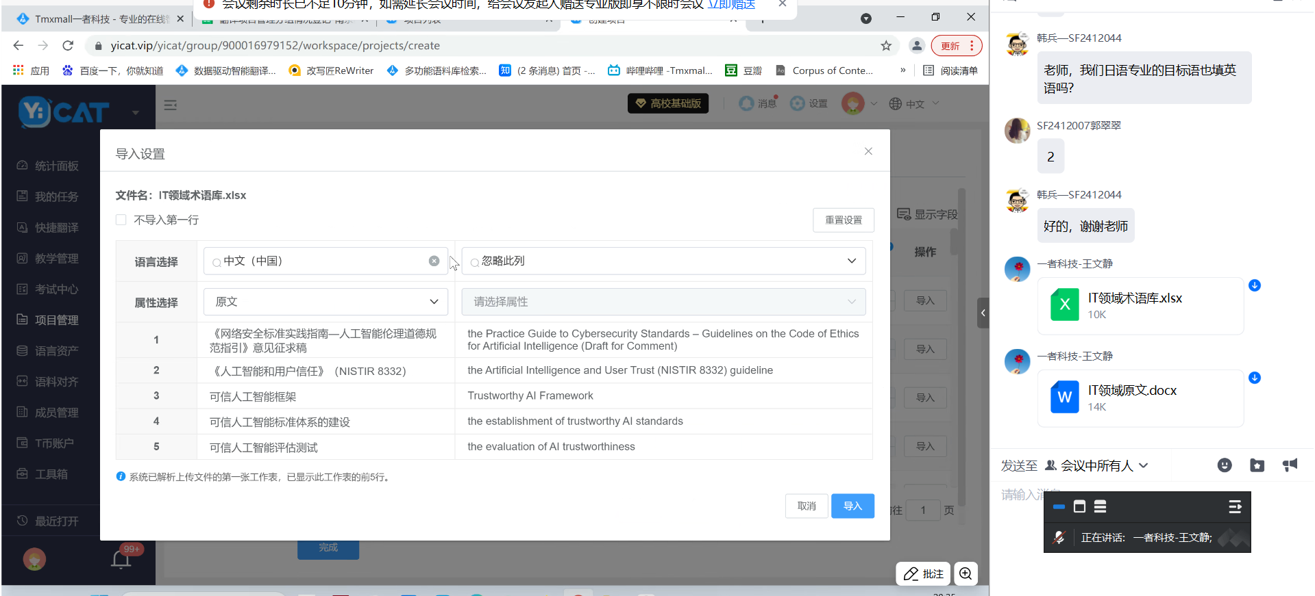 最后,王文静介绍了YiCAT的使用方法,鼓励学生进一步探索和应用这些技术,提高翻译效率和质量。