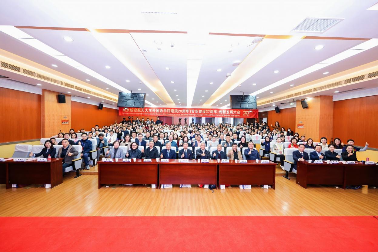 南京航空航天大学校长助理潘时龙教授,外国语学院历任院领导,曾在外国语学院学习或工作过的领导、兄弟学院领导、院友代表、学院教职工及学生代表出席大会。全球校友、广大师生、社会各界朋友通过网络平台观看大会直播,共同庆祝学院建院二十周年。