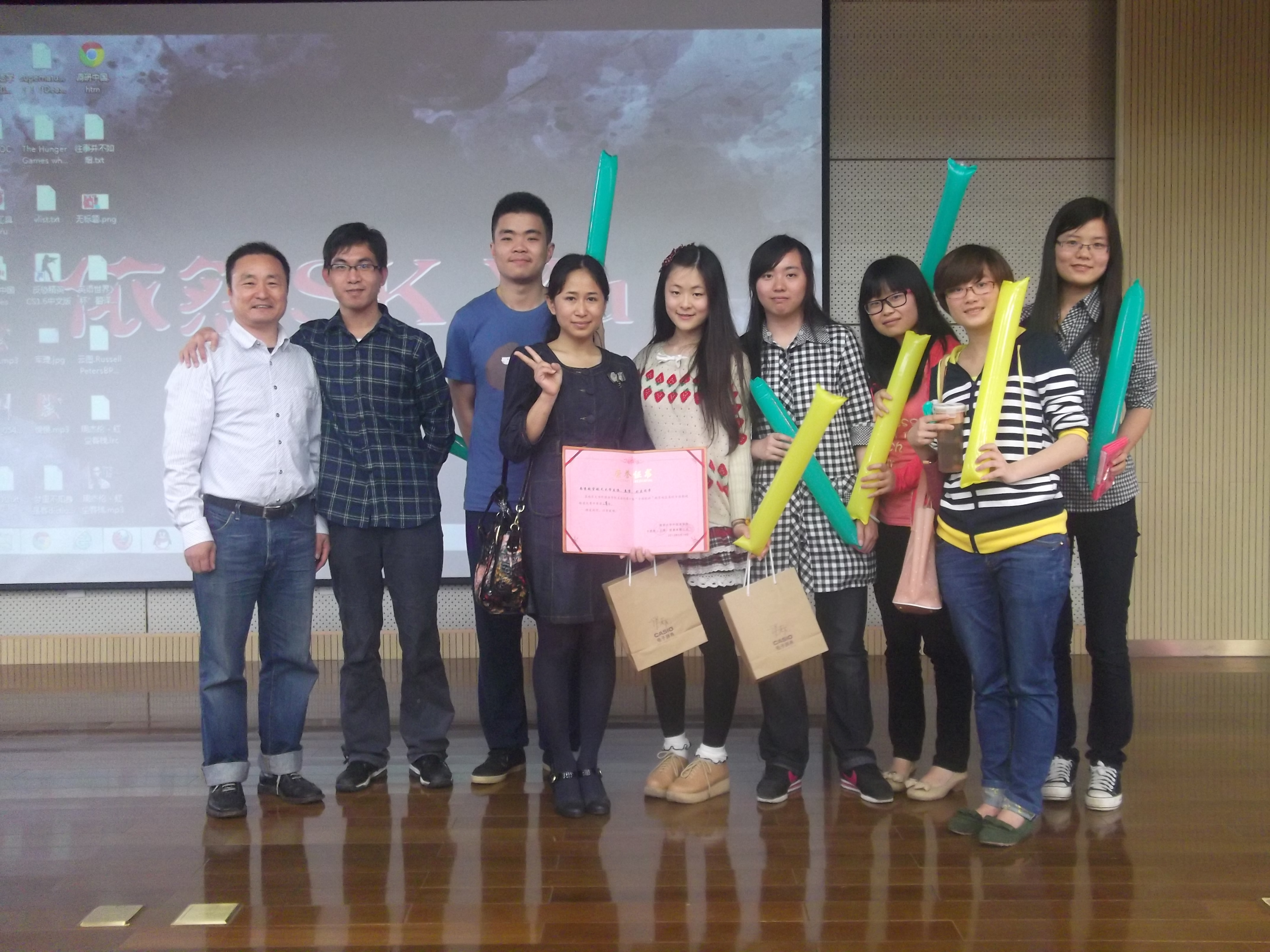 5月18日,由南京大学腐漫画 主办的第一届“卡西欧”杯南京地区高校日语影视配音大赛在南京大学仙林校区举行,南京大学、东南大学、南京师范大学、解放军国际关系学院等13所高校的队伍参加了本次大赛。由腐漫画 日语专业2010级学生王涵、秦倩、刘豆组成的腐漫画 代表队荣获了本次大赛亚军。
