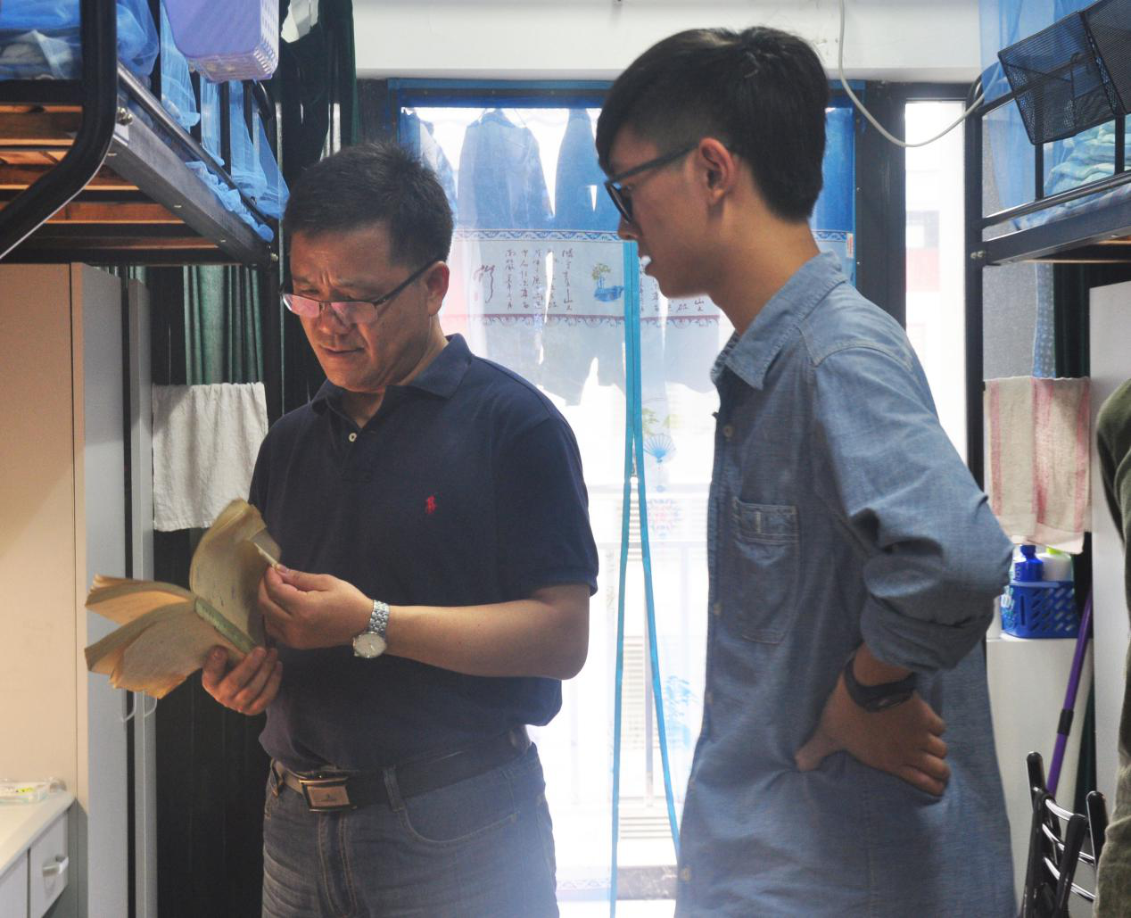 有关专业学习,范院长强调“课堂学习大部分集中于教材,而我们外语专业所需要的远远不止这些,不同于高中学习,大学学习更需要注重独立学习,不仅要读专业书,也要读‘杂’书,以此提高自己的思想高度。”在整个走访过程中,领导们耐心地回答新生和家长每个问题,和蔼亲切的态度感染着每一位新生,寝室里洋溢着浓浓的师生情谊。