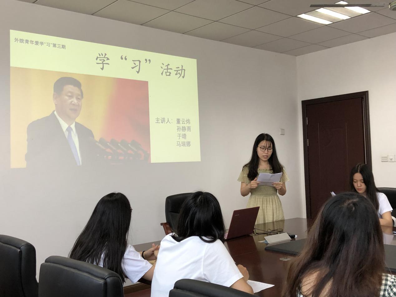 6月5日,外国语学院本科生联合党支部顺利完成外院青年爱学“习”接力活动第三棒——习总书记事迹学习。校党委委员、图书馆馆长王成华,外国语学院党委副书记梁薇,英语与日语系联合党支部书记、英语系主任姜礼福,辅导员盛嘉贤以及外国语学院本科生联合党支部成员共同参与。
