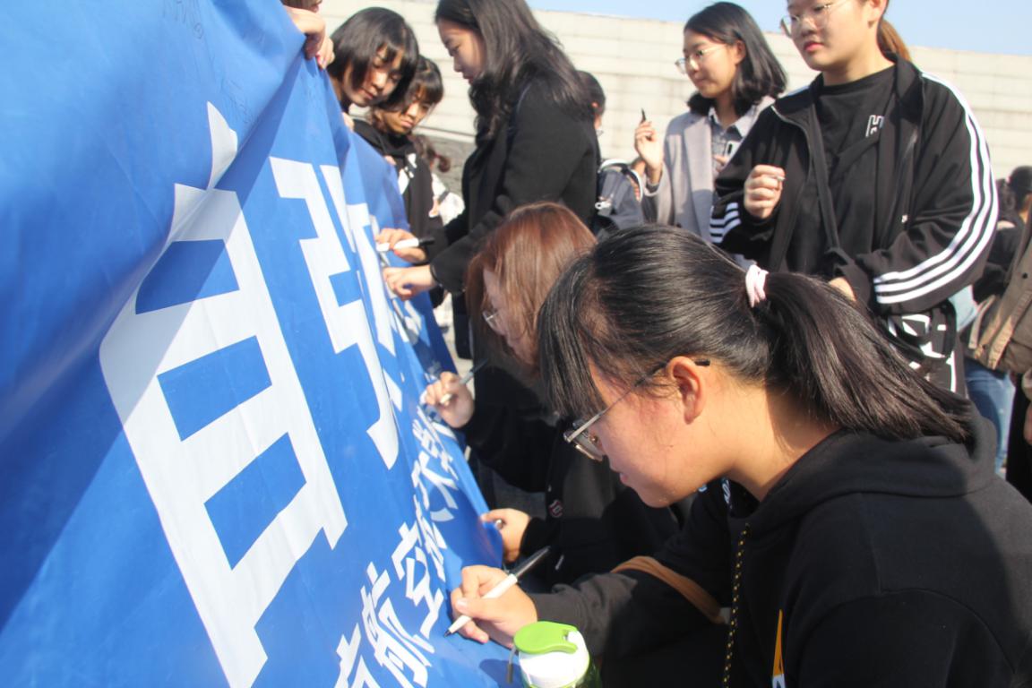 参观完毕后,同学们郑重地在“铭记国耻、自强不息”的横幅上签上自己的姓名,在和平广场的和平女神雕像前合影,以此表达祈愿和平、为国奋斗的决心。