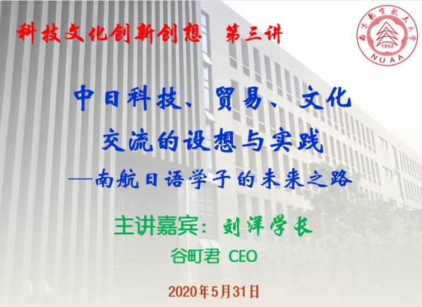 5月31日下午,日语系精品企业课程《科技文化创新创想》第三讲通过抖音平台开启,主讲人为日语系03级刘洋学长,现为谷町君CEO,同时也是南航外国语学院繁星・谷町君奖学金资助者。