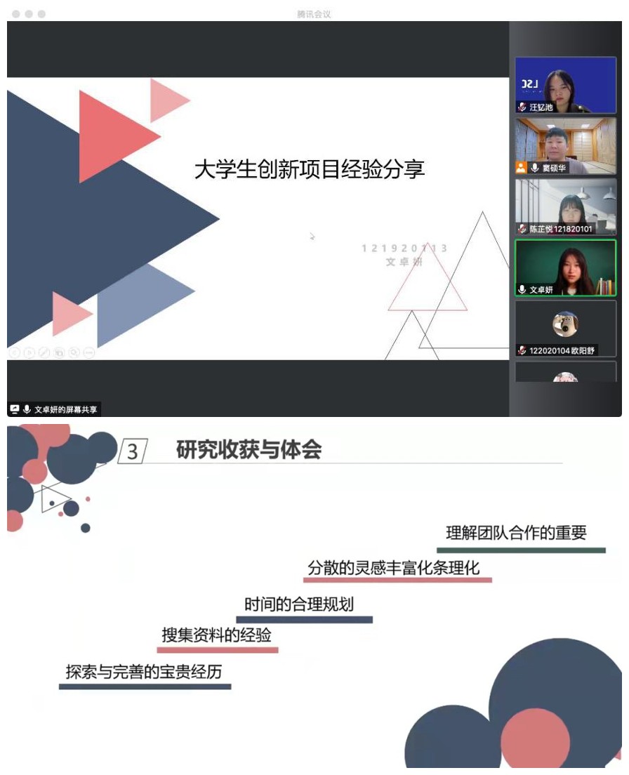 10月19日下午,外国语学院日语系主任窦硕华副教授与汪钇池、陈芷悦和文卓妍同学组成宣讲团向全院学生介绍了大学生创新训练计划项目及自由探索项目。宣讲会通过腾讯会议模式开启,英语系、日语系同学及部分本科生导师参加了会议。