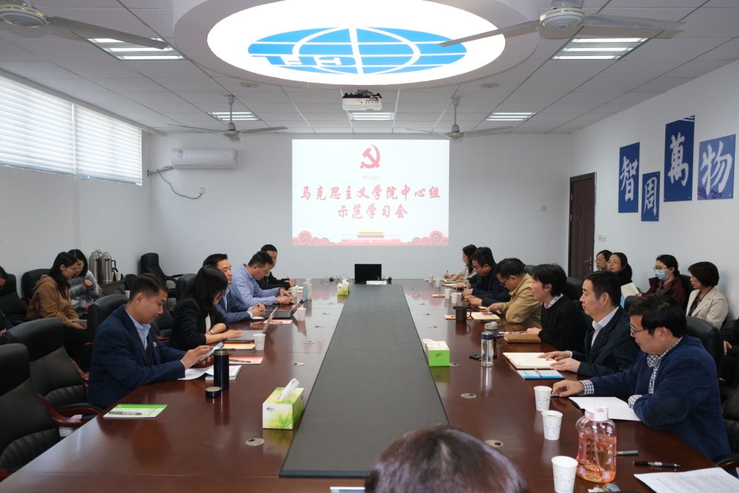 为深入学习习近平总书记“七一”重要讲话精神,落实学校《2021年下半年校院两级党委理论学习中心组补充计划》要求,10月18日下午,外国语学院联合材料科学与技术学院、计算机科学与技术学院/人工智能学院以及将军路校区管委会开展马克思主义学院中心组示范学习会暨“外语教学与立德树人研究中心”学习研讨会。出席会议的有马克思主义学院院长王智,副院长陈红桂、何畏和教授徐军等。外国语学院党委书记左彤云,院长范祥涛,党委副书记梁薇,副院长徐以中、姜礼福以及部分教师代表。材料科学与技术学院党委书记石勇、计算机科学与技术学院/人工智能学院党委书记刘健荣、将军路校区管委会党工委书记邬沛雄、主任刘兼唐,副主任周聚等同志志参加了观摩学习。左彤云代表参会学院对马克思主义学院的领导专家送学上门表示了欢迎和感谢。中心组学习会由陈红桂主持。