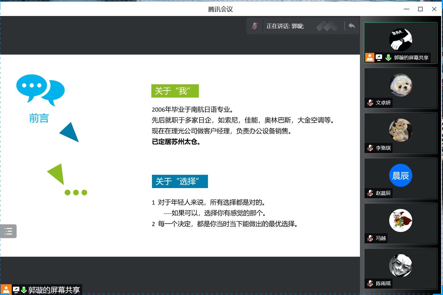 3月24日下午6:30,外国语学院日语系科技文化创新创想课程2022年度第二讲通过腾讯会议成功进行,主题为《迎接职场,持续成长——从日企工作感悟谈起》。主讲嘉宾为日语系02级校友郭璇,现任理光(Ricoh)中国客户经理。