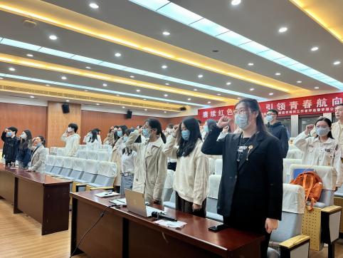 朗诵结束后,全场一起重温入团仪式,现场全体起立,在铿锵悦耳的入团誓词中完成了宣誓,一句句掷地有声的承诺,让现场的共青团员热血沸腾、斗志昂扬。