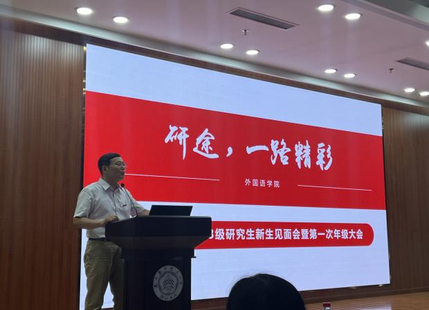 英语系主任张立新鼓励新生以立德树人和服务国家、行业、学业为导向,固本强基、守正创新,在掌握听、说、读、写的语言基础的同时,培养开阔的国际视野与较好的跨学科跨文化沟通合作能力;日语系主任窦硕华以“选择南航日语,开辟精彩人生”为主题,通过数据展示,清晰明了地展现了南航日语在行业内的优势以及专业特色。