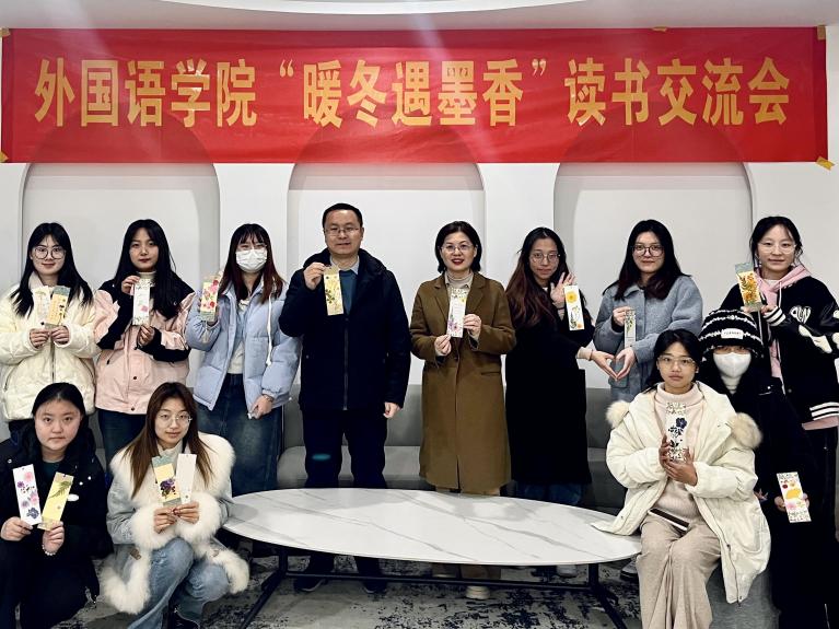 为增加师生交流,共享文学魅力,2023年11月30日下午,外国语学院2021级本科生举办“暖冬遇墨香”读书交流会,我校教师发展与教学评估中心主任朱建军老师、副主任杨兰芳老师、外国语学院2021级本科生代表参与了本次活动。