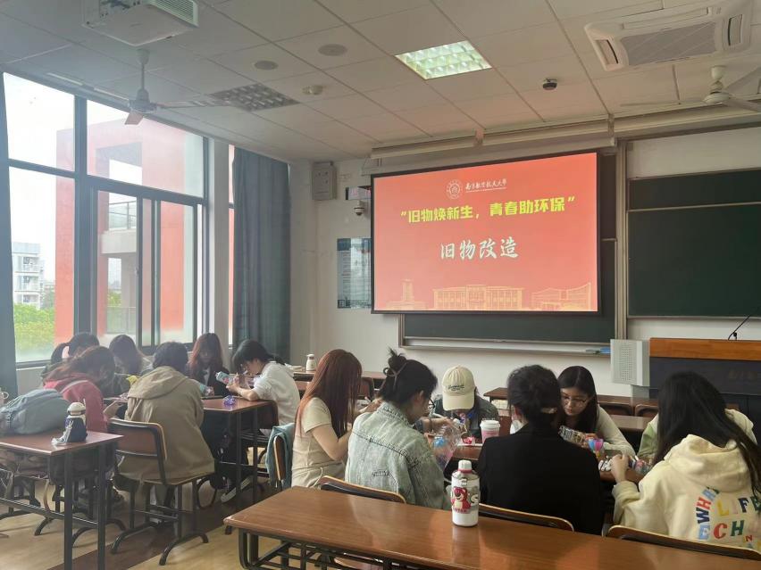 让废弃之物重获新生,以青春之力守护绿色家园。在第55个世界地球日到来之际,为了学习贯彻习近平生态文明思想、教育引导党员和青年保护自然、践行绿色、低碳、可持续发展理念,4月17日下午,外国语学院本科联合党支部开展了“旧物焕新生,青春助环保”主题党日活动,入党积极分子、发展对象及党员代表参与了本次活动。