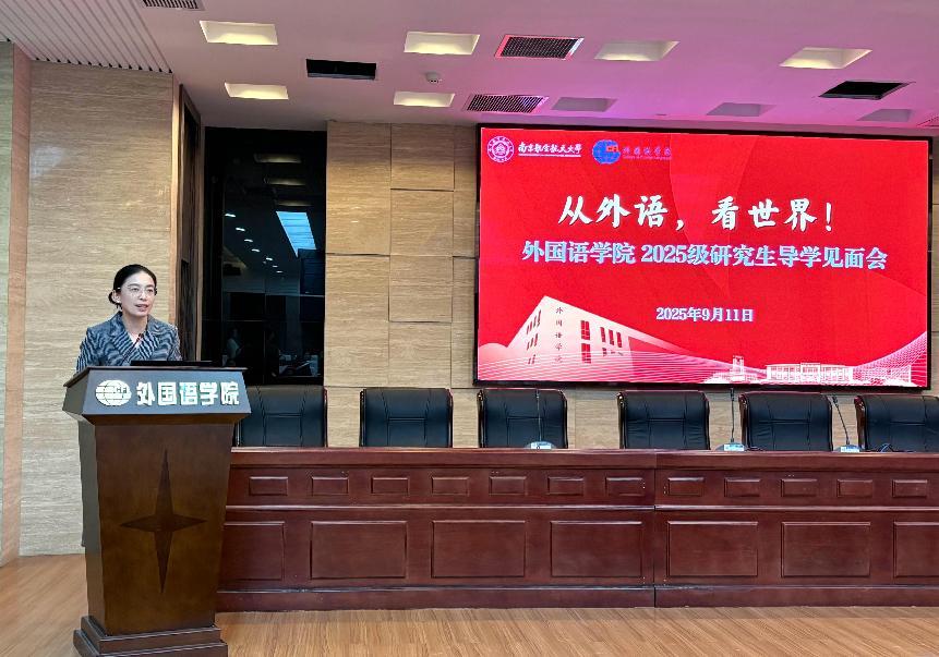 金秋九月,桂香满溢,正值新学期启航、新学子逐梦的关键节点。为帮助2025 级研究生快速融入学院大家庭,搭建导师与新生间的沟通桥梁,9月11日,外国语学院2025级研究生导学见面会在将军路校区外国语学院楼国际会议中心举行。学院党委书记左彤云、院长徐以中、副院长姜礼福,以及无授课任务的全体研究生导师、研究生教育管理团队与2025级研究生共同参会,会议由党委副书记吴科颖主持。