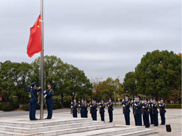 为深入学习贯彻党的二十届四中全会精神,凝聚奋进力量、激发使命担当,11月17日,外国语学院在将军路校区国旗广场举办“学习贯彻党的二十届四中全会精神——砥砺奋进新征程”主题升旗仪式。外国语学院党委副书记吴科颖、本科生联合党支部支部书记、2023级辅导员冯子格,本科生联合党支部党员、研究生党员代表参加活动。